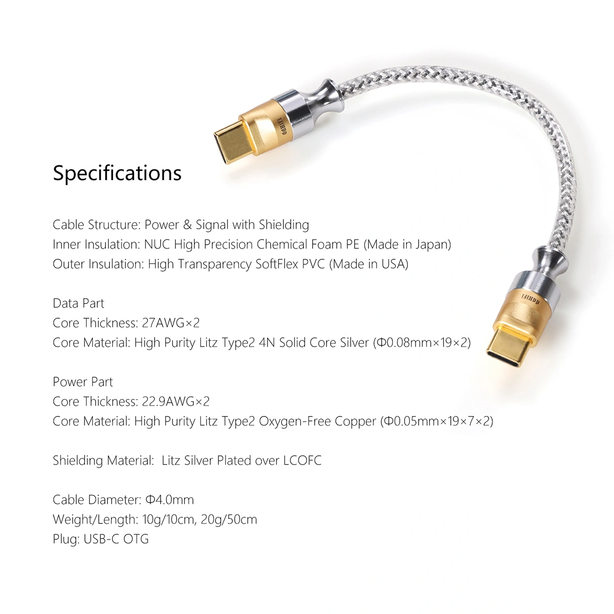 Silver shielded wire is smaller and more compact|Easy to Plug and Unplug|Dual Bi-directional OTG Plugs