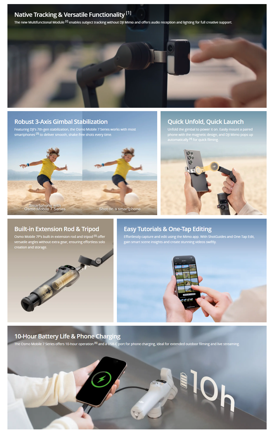 Pair the Osmo Mobile 7 Series with the DJI Mimo app to enjoy AI-powered one-tap editing and a range of exclusive video templates. From shooting to processing, it's a one-stop solution truly friendly for new creators.