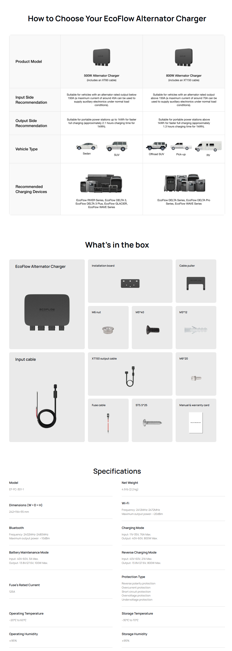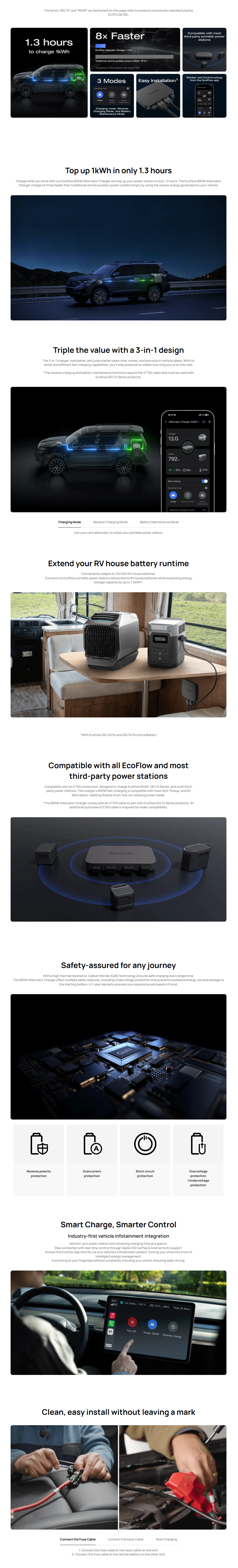 - 800W turbo alternator, 8× faster than traditional in-vehicle auxiliary power outlets. Top up 1kWh in only 1.3 hours.