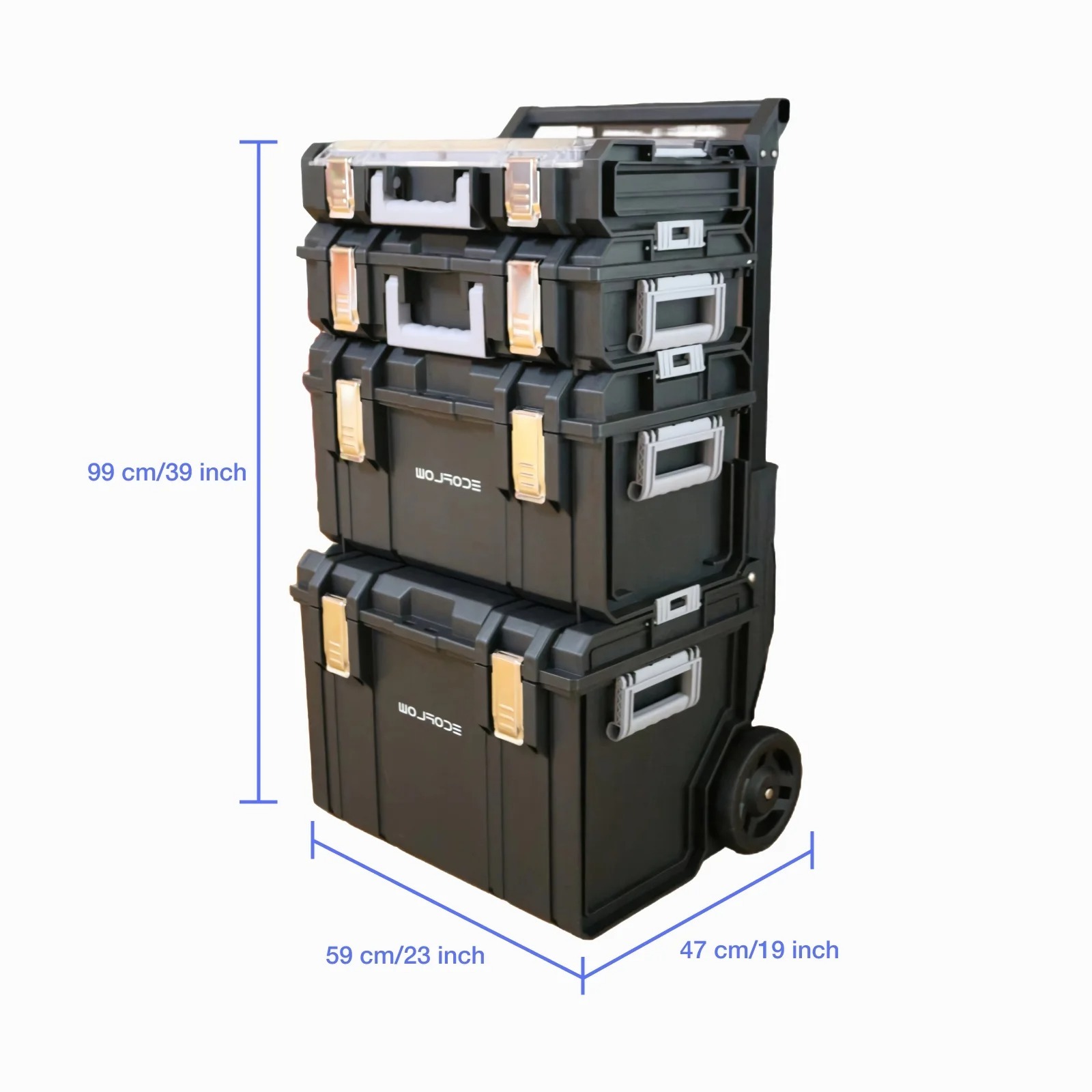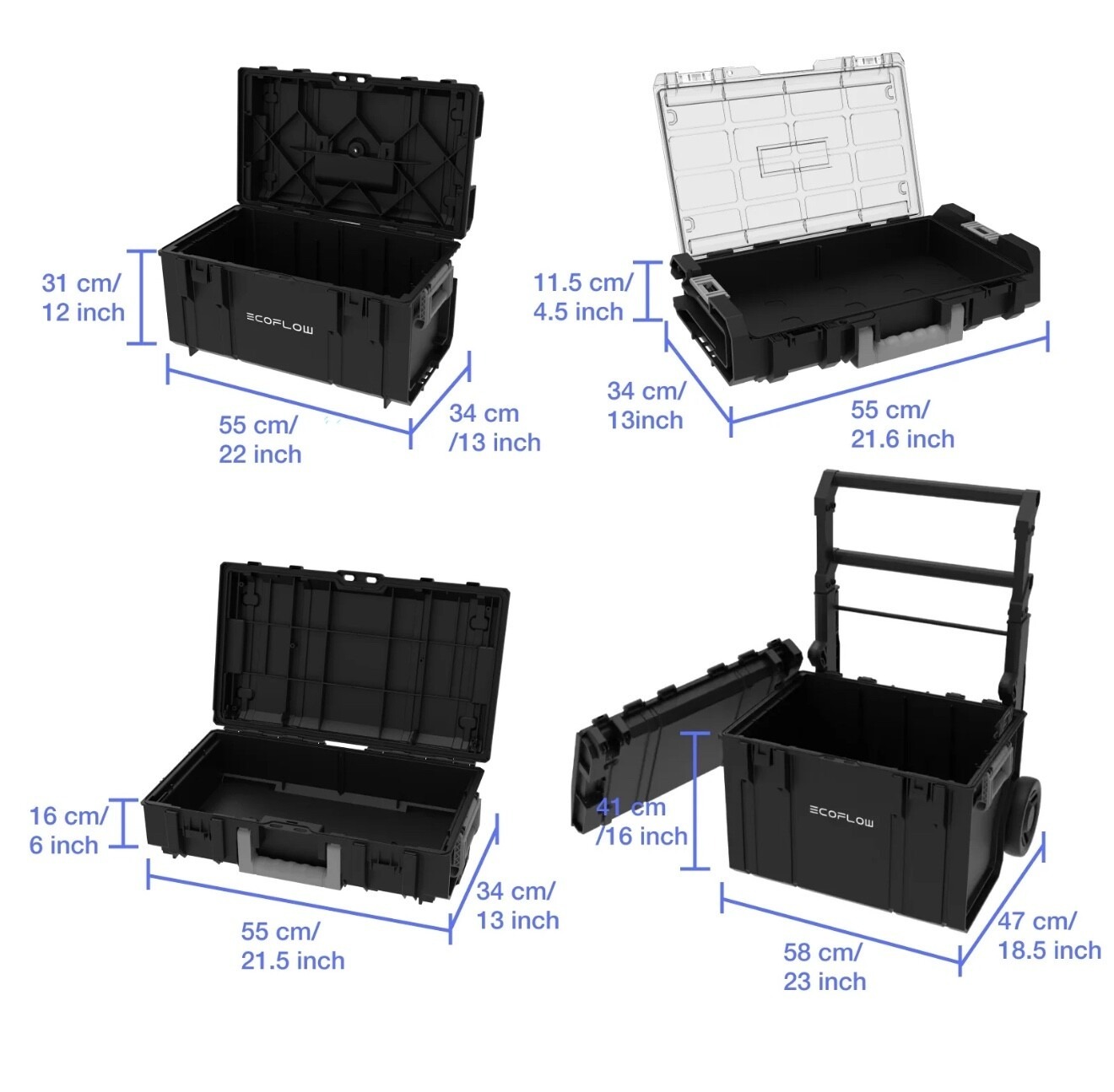 EcoFlow 50 英寸工具箱,兼具眾多專業功能。整合式上蓋收納格採用透明設計,讓您能一眼看清內容物。可拆卸的多功能托盤便於攜帶手工具,使常用工具隨時觸手可及。工具箱配有中央提把,可輕鬆從車庫搬運至後院。金屬蓋止器能確保上蓋持續開啟,讓您在箱內翻找零件時無需擔心蓋子意外闔上。備有掛鎖孔設計,提供便捷的安全升級方式,妥善保護您的工具。