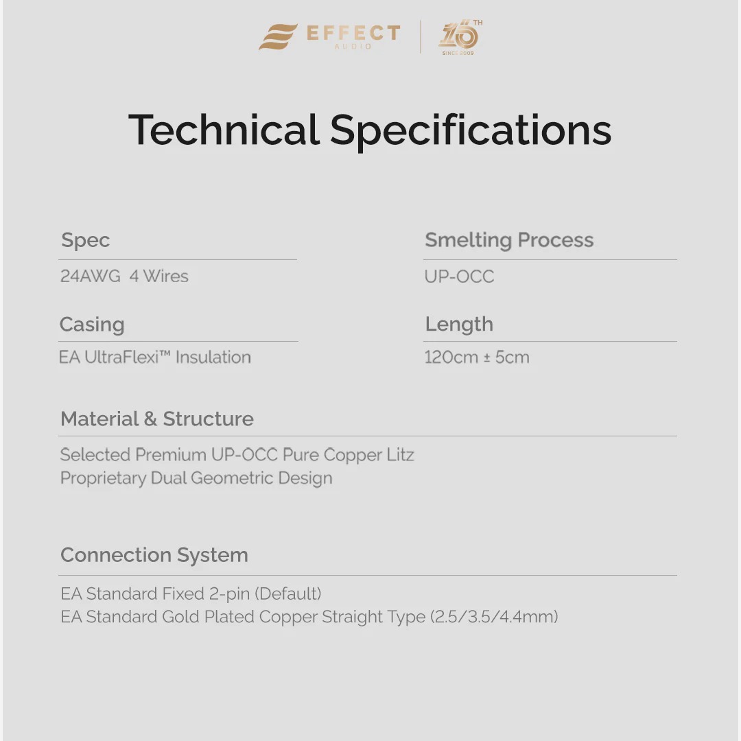 EFFECT AUDIO has specially selected premium UP-OCC materials, developed using years of structural design expertise, with reference to our mid-to-high-end products. The potential of the cable is limitless.