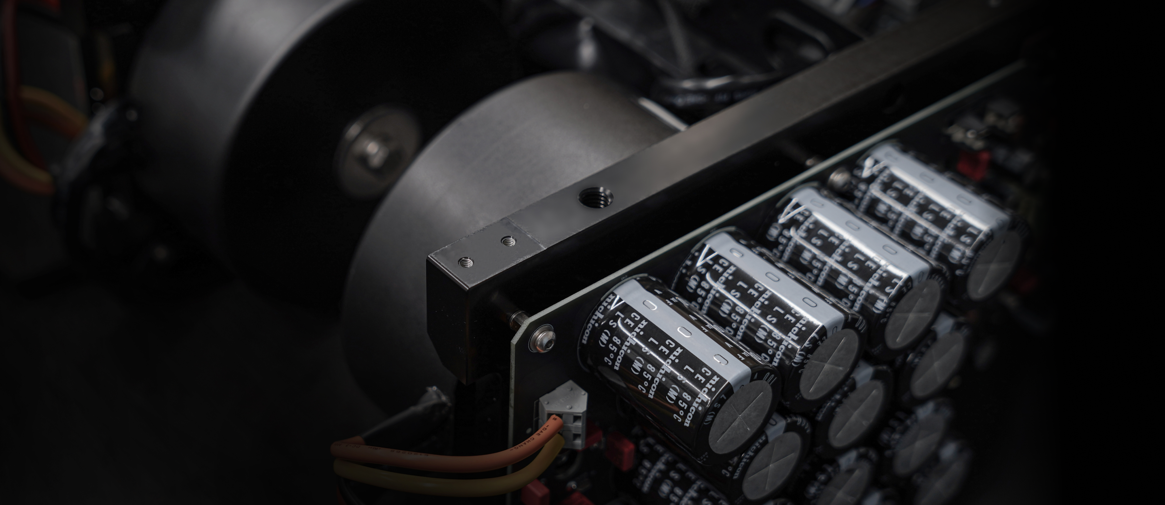 Independent transformers for the left and right channels enable a fully independent dual-channel design, with a total power supply of 1250VA. The main power is ±80V. Each channel features 14 parallel-connected 6,800µF capacitors, forming the main power supply filtering capacitor matrix. The total capacity of capacitors for both channels reaches 190,000µF. Compared to a single capacitor with the same capacity, multiple capacitors in parallel features lower equivalent internal resistance, ensuring greater flexibility in handling large current outputs.
