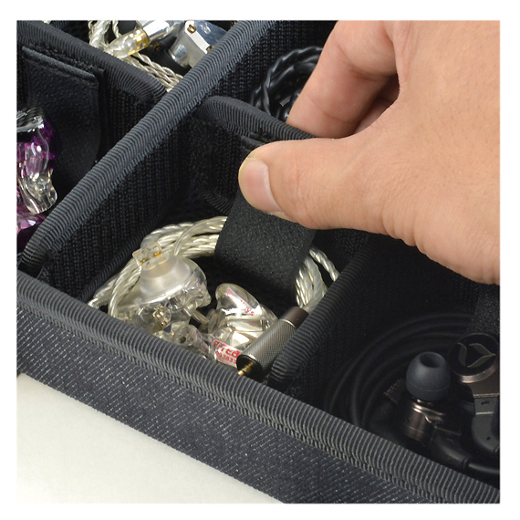 Neatly stores earphones | The lid and bottom are padded to protect the earphones and cables | Sturdy construction | Wear-resistant