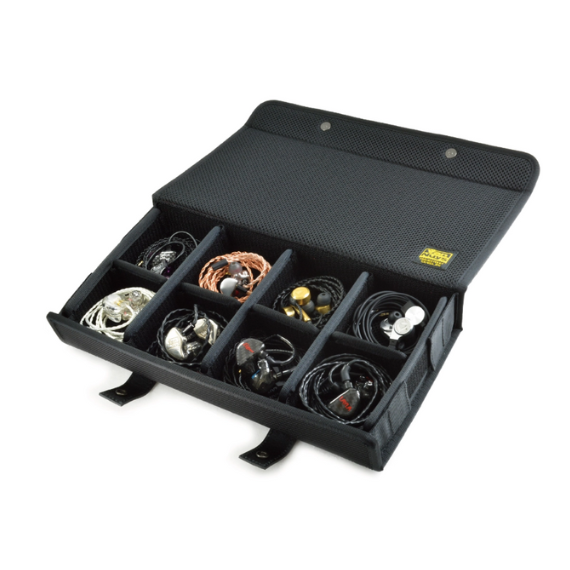 Neatly stores earphones | The lid and bottom are padded to protect the earphones and cables | Sturdy construction | Wear-resistant
