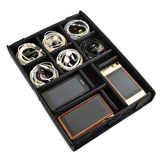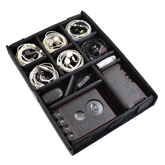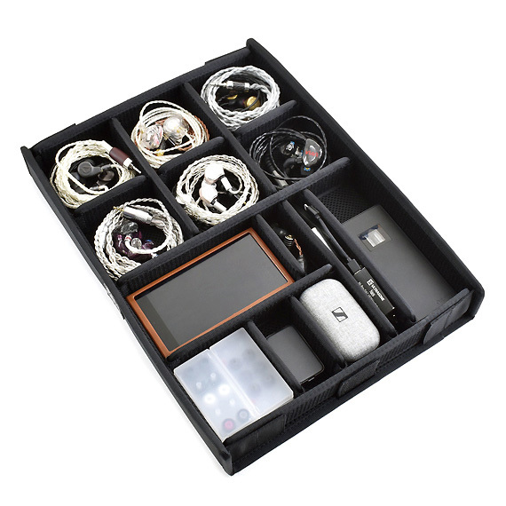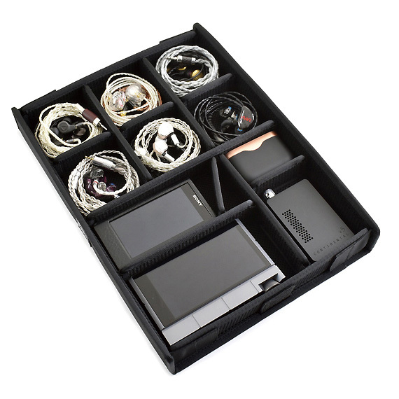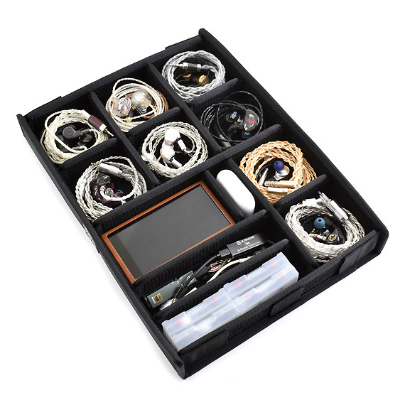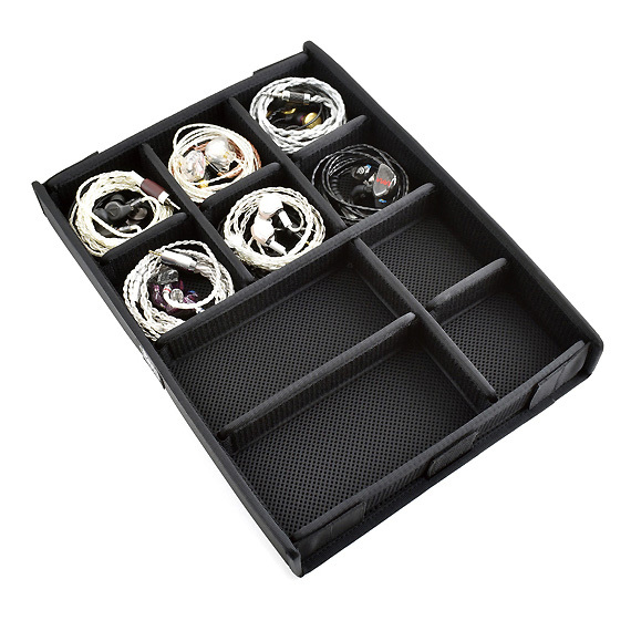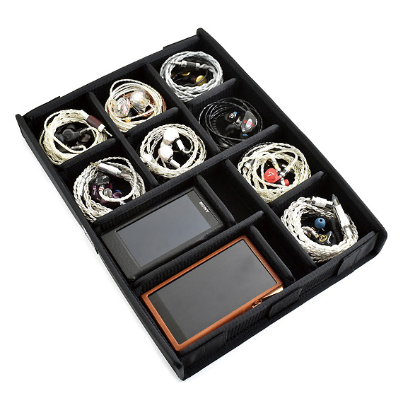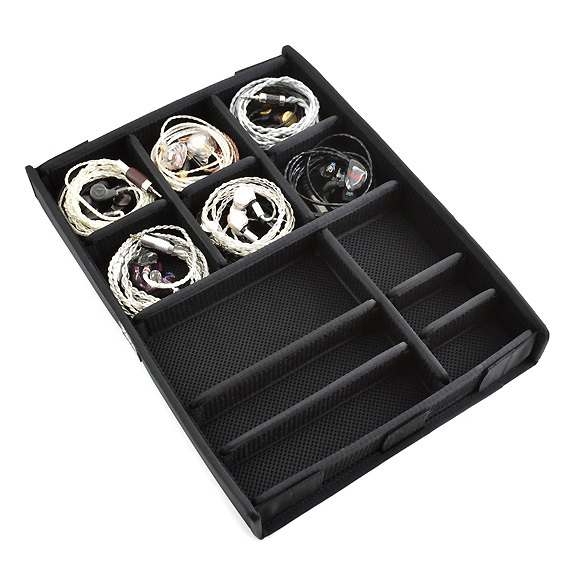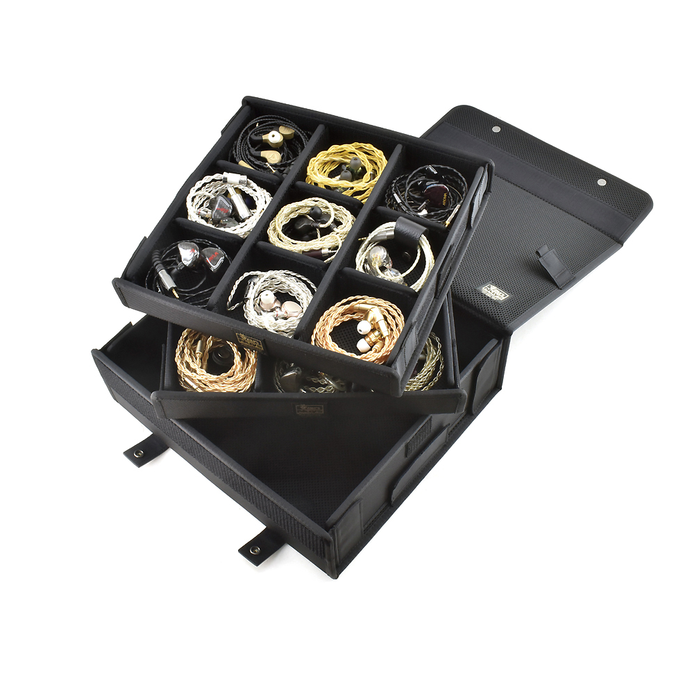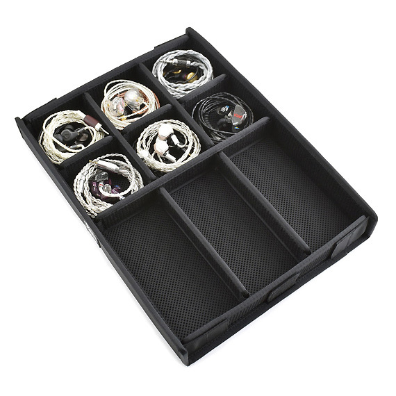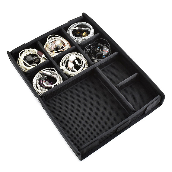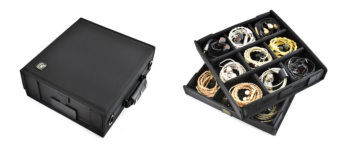 Neatly stores earphones | The lid and bottom are padded to protect the earphones and cables | Sturdy construction | Wear-resistant