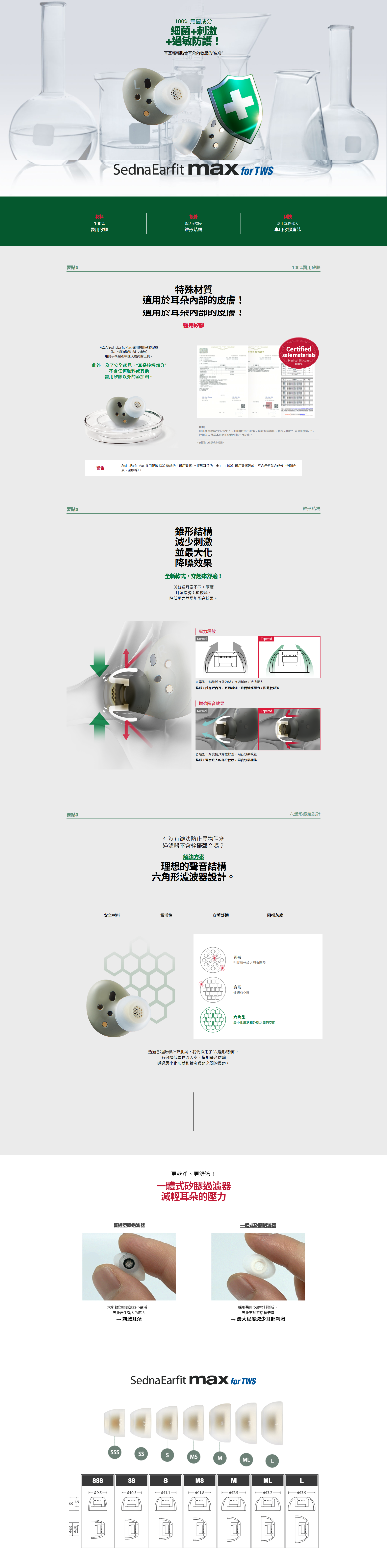 SednaEarfit MAX 系列是 Azla 最新推出的耳膠系列,以醫學級矽膠製造,以椎形結構作設計概念,使配戴感更舒適,隔音方面效果更出色,音色更有明顯的提升。