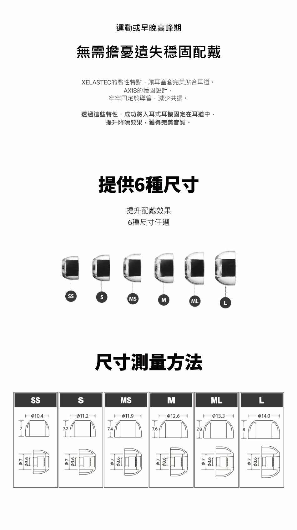 透過分析兩年內超過1,500 隻耳朵的形狀,提供由 SS-L 碼多種尺寸選擇。
