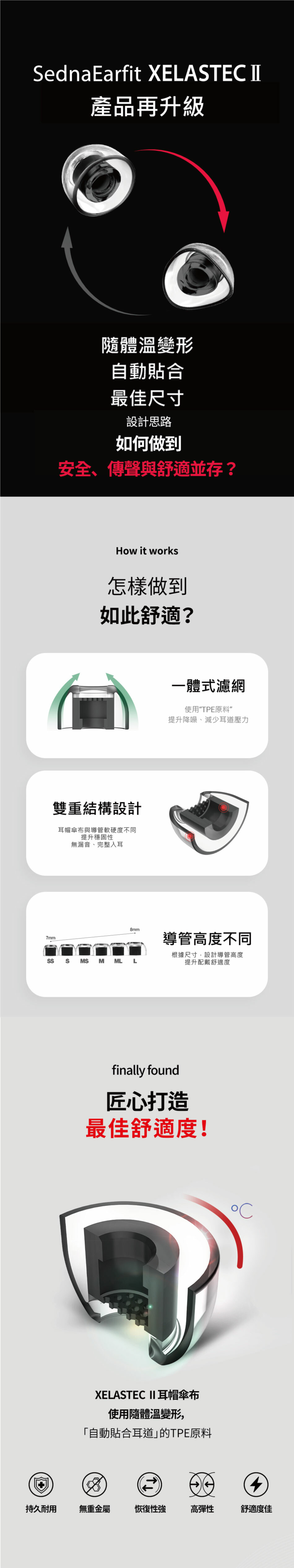 幾分鐘後身體熱量會輕柔地改變形狀,以適應耳道的各種形狀,而不會造成任何壓力。