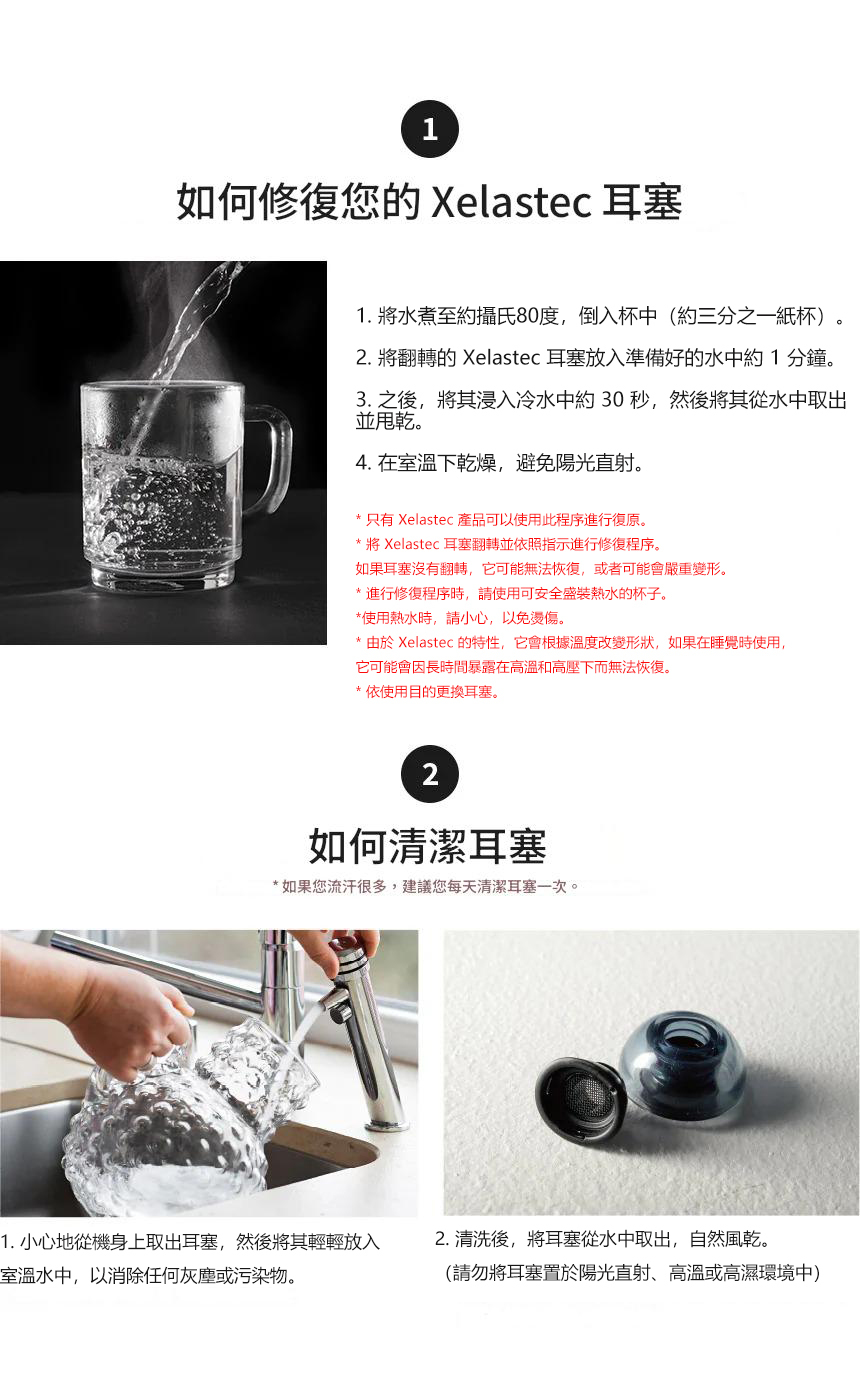 耳膠採用德國全新親膚物料製造,獲多個醫學認證,堅韌耐用,適合敏感皮膚用家使用。