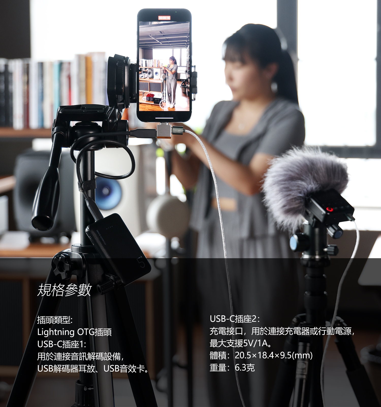 輸出支援: USB-C型音訊解碼裝置 | 輸入: 5V/1A Max