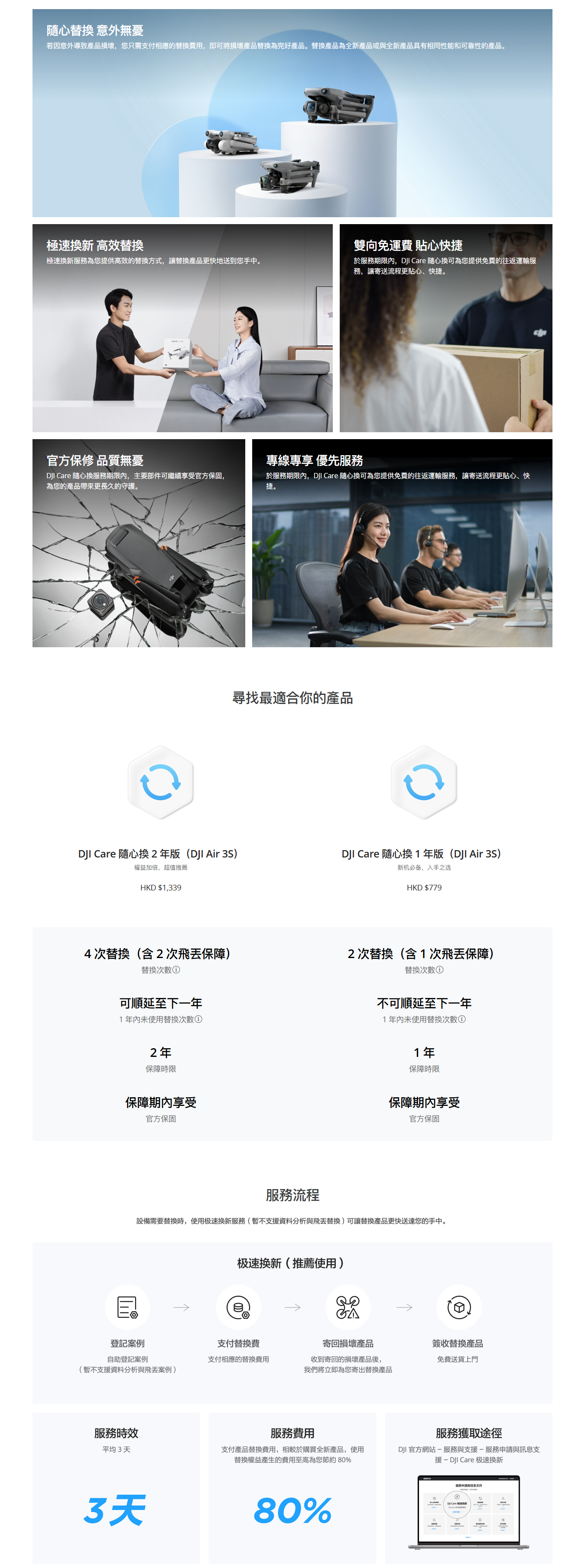 2. 續訂服務條件:若您已為設備購買了 DJI Care 隨心換服務,可於服務到期後的 15 天內,購買 DJI Care 隨心換 1 年版進行續訂。