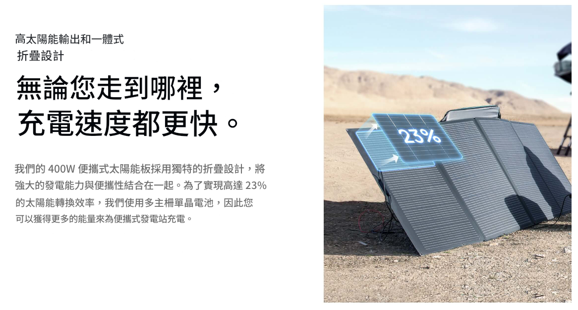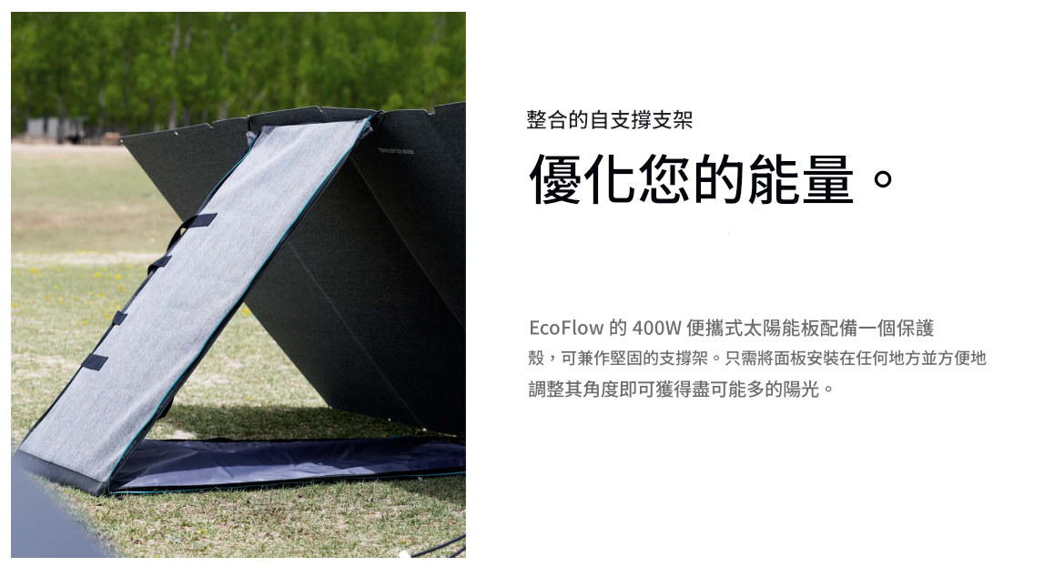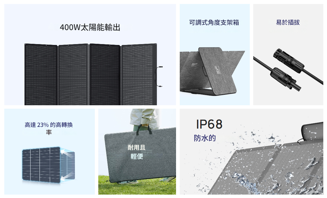 ECOFLOW 400W太陽能由高效的單晶矽電池組成,可以為DELTA和您的電器設備充電,並在連接到我們的便攜式電站時使您的設備運行不中斷。