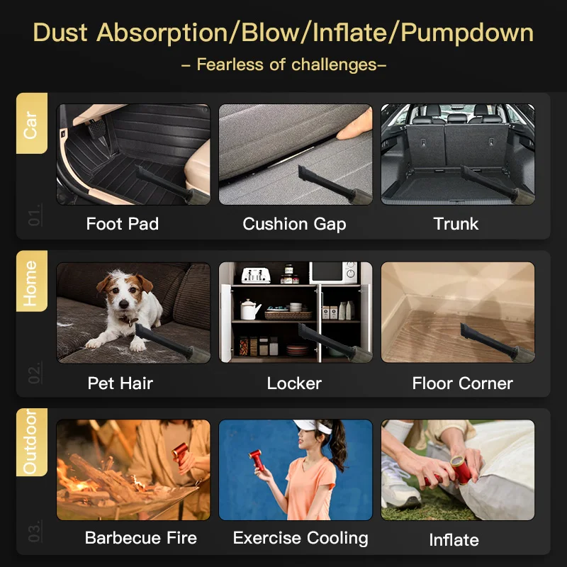 採用無刷直流調整電機,最大輸出轉速100000RPM, 可產生最快每秒20公尺的風速,比1代幾乎提升一倍。