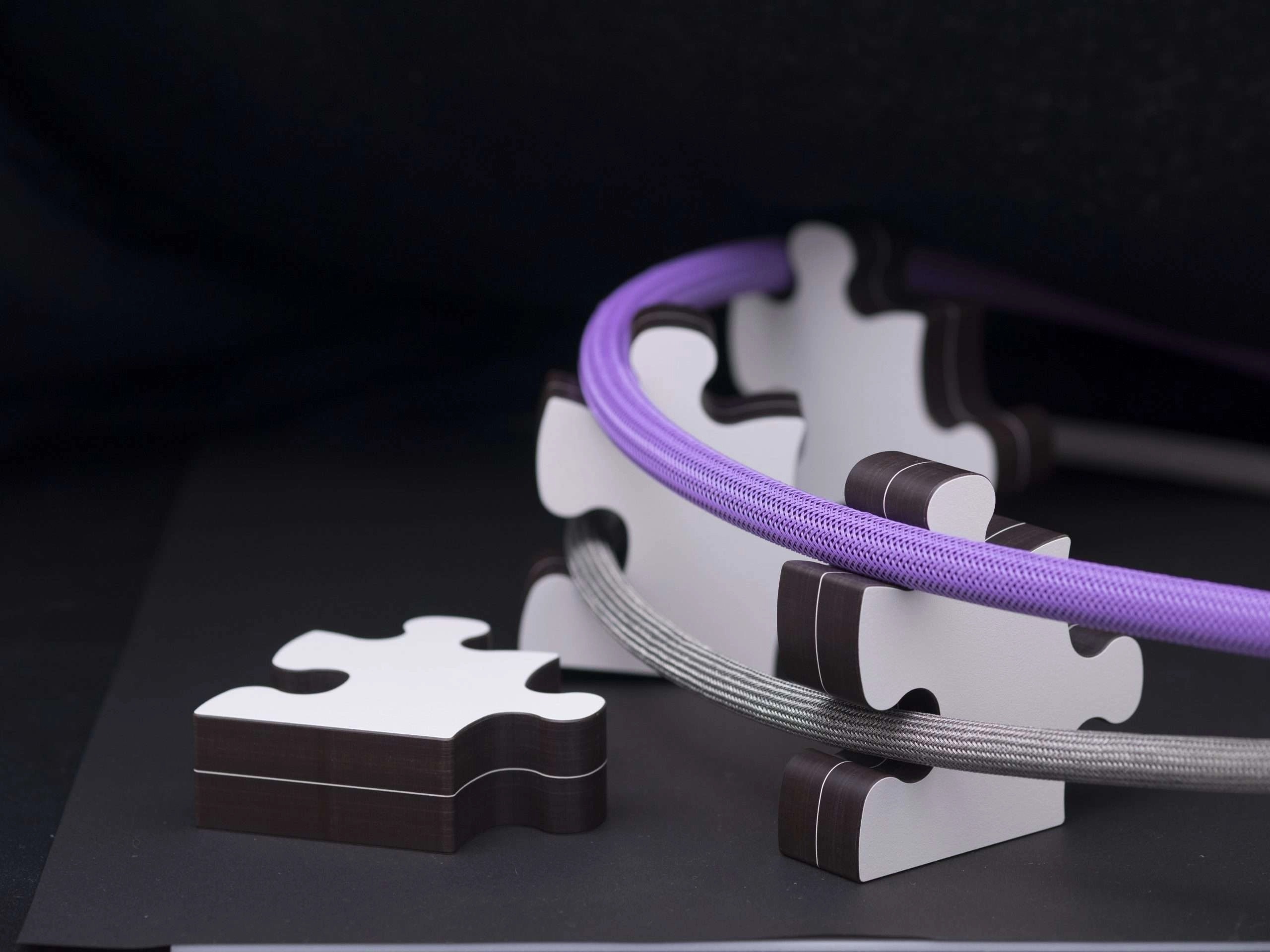 外型就像一塊拼圖,可單獨使用,又可以組合使用,靈活擴張。雖然設計成拼圖形,但底部依然保持平滑,即使是粗身的線材都可以穩固地放在上面。