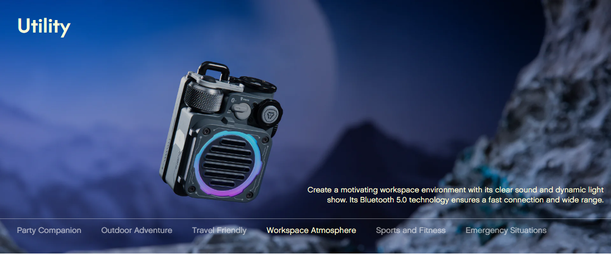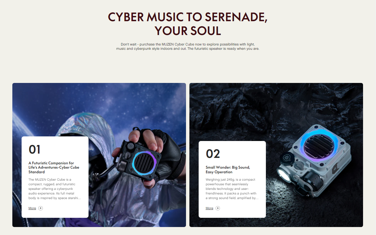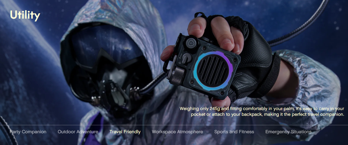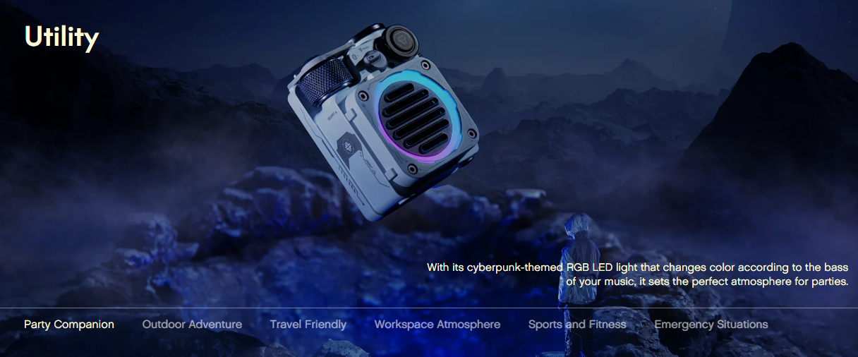 MUZEN Cyber Cube 機身採用高強度電鍍鋅合金,精密機械設計,十分具有未來感。配合節拍漸變燈,是party聚會營造氛圍穿的夥伴。