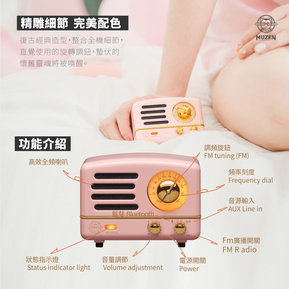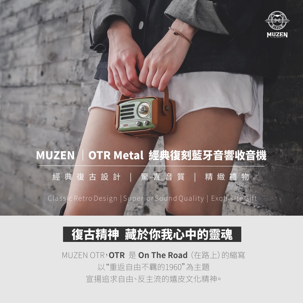 MUZEN OTR金屬手提式Bluetooth音響&FM收音機被是由高密度合金做成,是88*65*56 mm的小型的尺寸。
