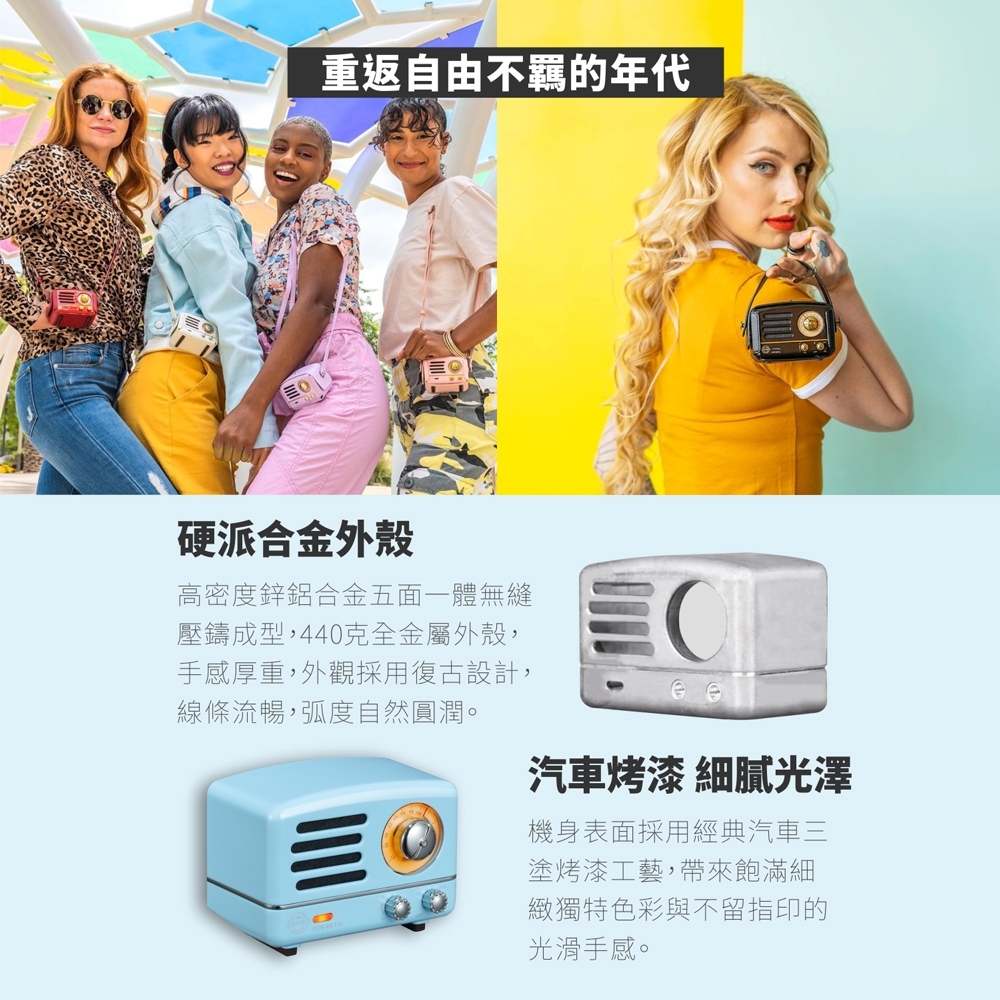 復古經典的外型搭配汽車烤漆工藝 鋅鋁合金一體壓鑄輕巧的鐵肺唱將 Hi-Fi“倒相”結構音場設計音色溫暖細膩 手調FM廣播功能回到自由嬉皮年代 原廠搭配可攜復古皮套與皮革手提箱