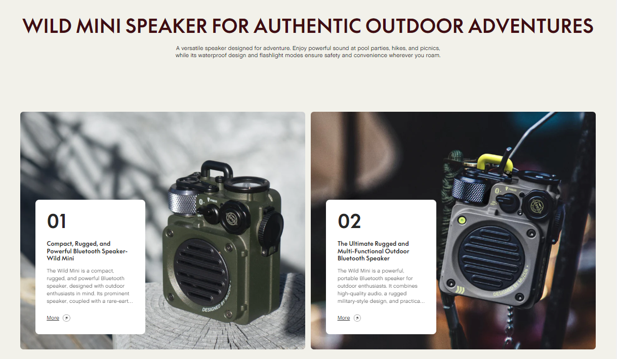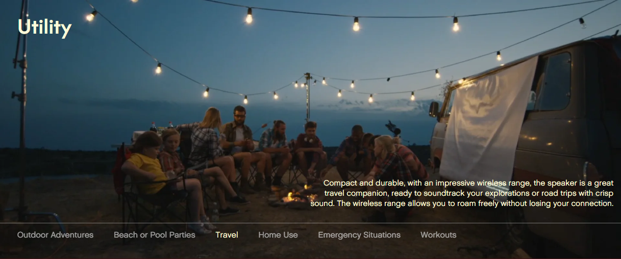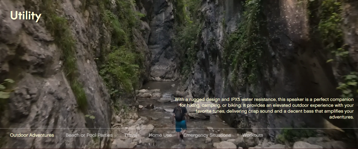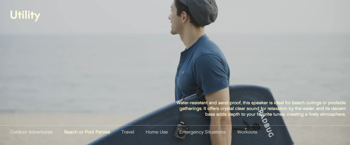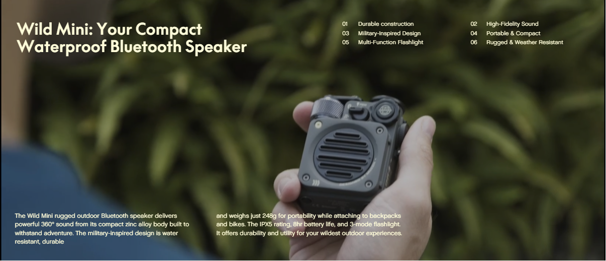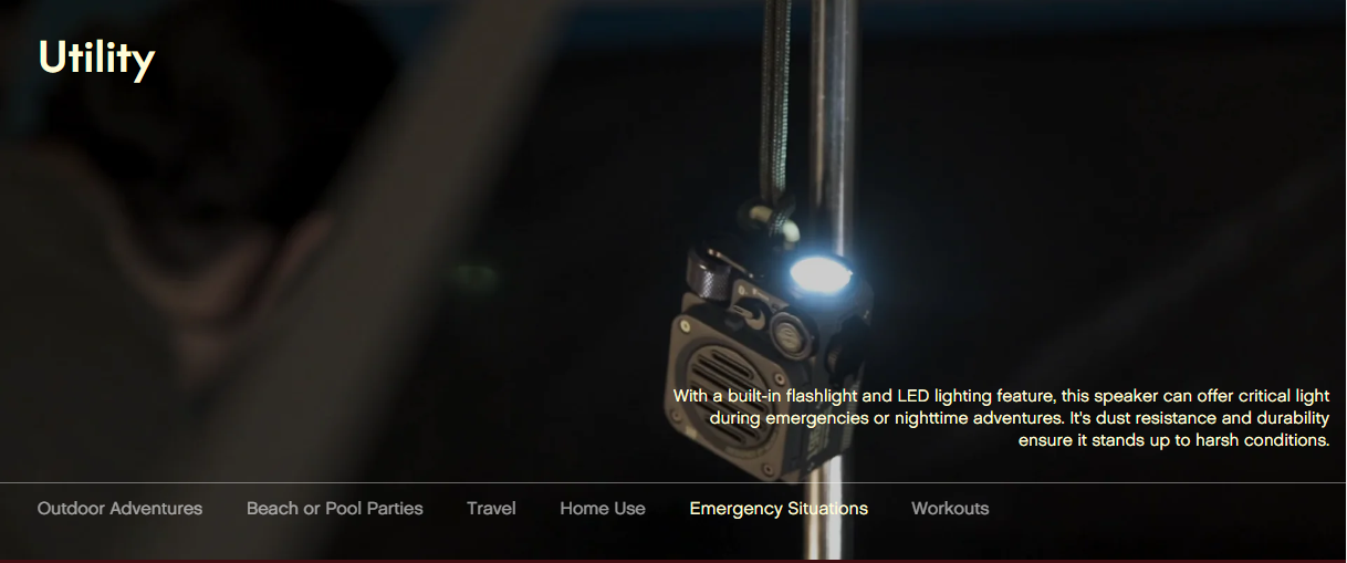 IPX5 防水性以及內置的戶外手電筒,是旅行或戶外露營活動最受矚目的便携音箱。