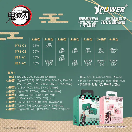 XPower x 鬼滅之刃 WC35 35W 4輸出 PD3.0 迷你快充充電器