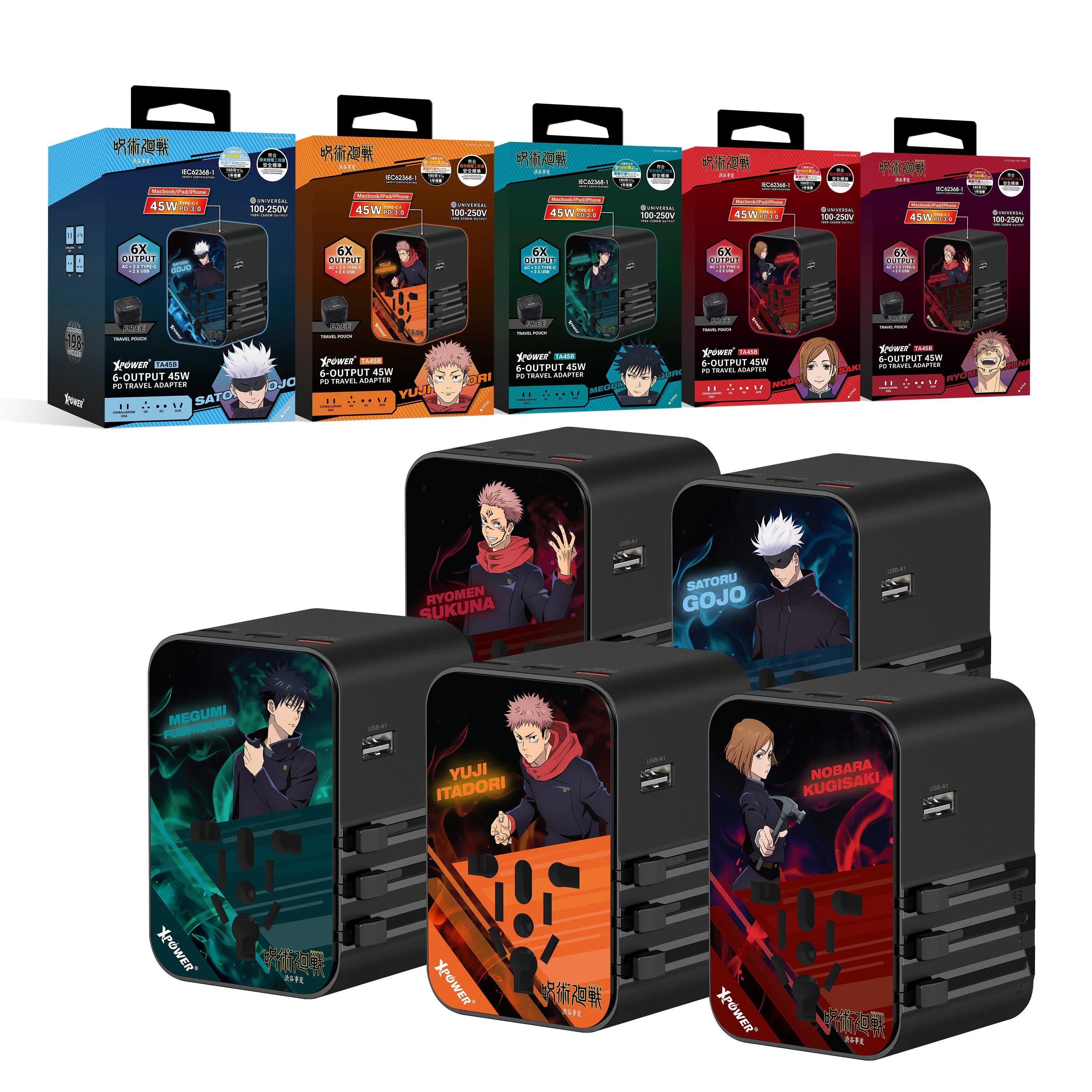 XPower x 咒術迴戰 TA45B 6輸出 45W PD/PPS GaN旅行充電器